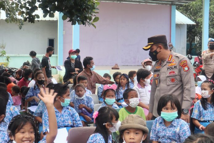Kegiatan Vaksinasi serentak dimulai dari Pendaftaran, Screening, Penyuntikan, Input Data dengan tenagaVaksinator dari Gabungan Personil Biddokkes Polda Kepri, Satbrimobda dan Si Dokkes Polresta Barelang Kepri sejumlah 50 orang dan dengan sasaran 1.564 orang Anak Umur 6-11 Tahun.