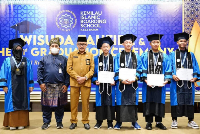 Batam,batamtv.com,- Wali Kota Batam, Muhammad Rudi yang diwakili Sekretaris Daerah Kota Batam, Jefridin menghadiri sekaligus meleppas wisuda Tahfidz santriwan dan santriwati sekolah Kemilau Islamic Boarding School di i Hotel, Senin (3/6/2024). Jefridin juga menyerahkan cinderamata dan sertifikat kepada siswa berprestasi yang diwisuda.