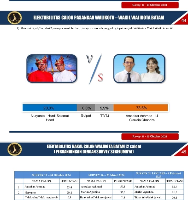 Direktur Eksekutif Liberte Institute Dr.(Cand) Indrayadi, M.Si. menyebutkan bahwa ini survey terakhir yang digelar Liberte Institute pada pilkada Batam.