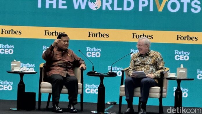 Presiden Prabowo Subianto dan Chairman Majalah Forbes Steve Forbes dalam acara Forbes Global CEO Conference (Foto : Eva/detikcom)