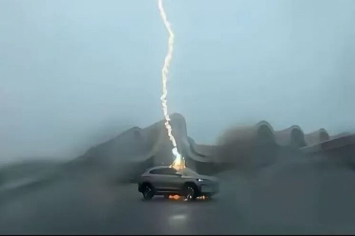 Rekaman menunjukkan kilatan cahaya disertai busur listrik yang menyambar atap mobil. Meski menerima sambaran petir berulang, pengemudi berhasil keluar dari kendaraan tanpa cedera. Sistem inti “tiga-listrik” yang mencakup baterai, unit kontrol listrik, dan motor juga dilaporkan tetap berfungsi normal.