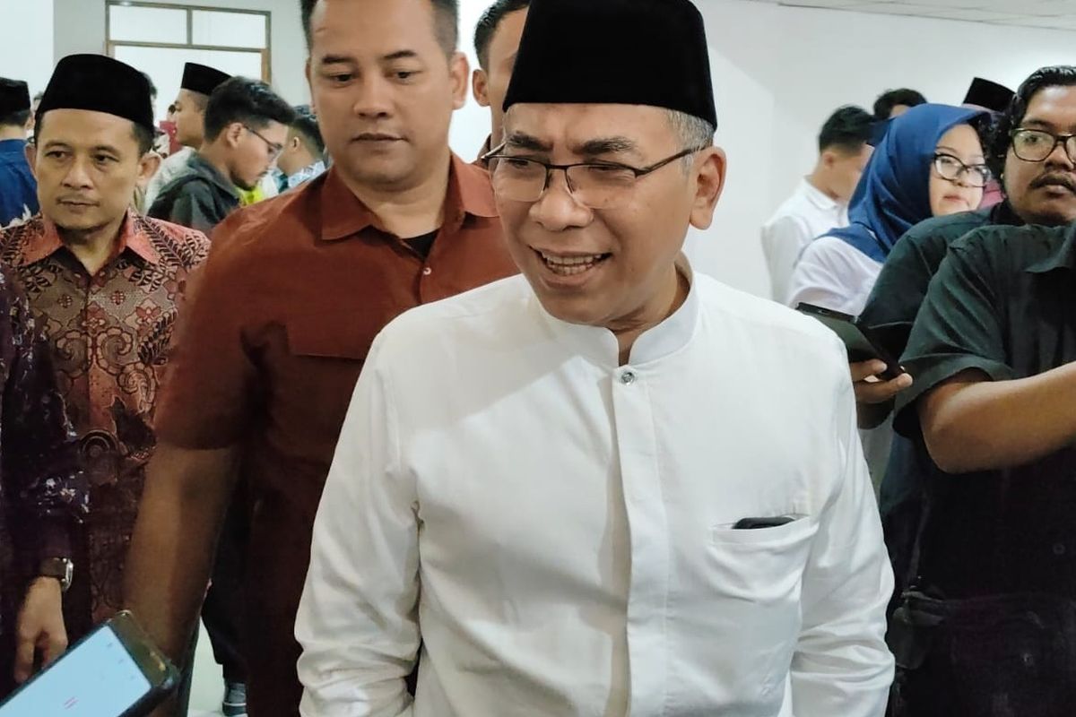 Ketua Umum PBNU Yahya Cholil Staquf saat menemui wartawan usai menghadiri acara simposium pesantren 2024 di Fisipol UGM, Selasa (8/10/2024).(Foto : Yustinus Wijaya Kusuma/Kompas.com)