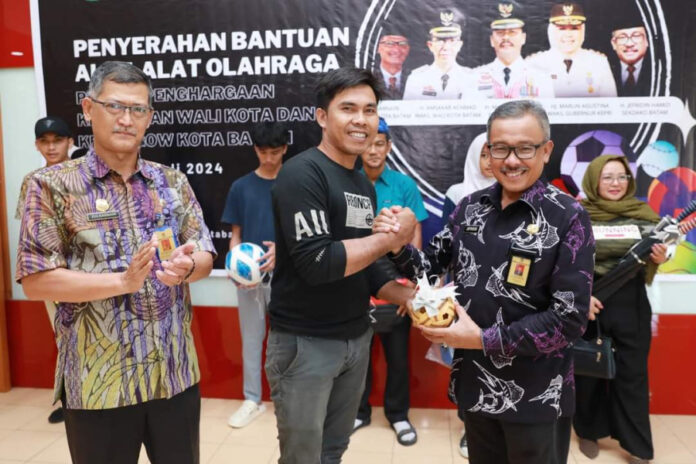 Batam,batamtv.com,-Sekretaris Daerah Kota Batam Jefridin menyerahkan secara simbolis bantuan alat-alat olahraga dari Pemerintah Kota Batam kepada berbagai cabang olahraga di Kantor Dinas Kepemudaan dan Olahraga Kota Batam, Kamis (18/7/2024)