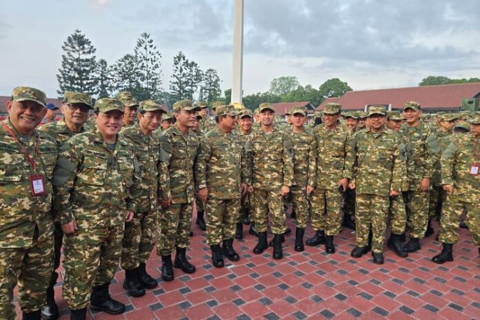 Ia juga mengonfirmasi bahwa Kabinet Merah Putih mengenakan baju loreng khas komponen cadangan (komcad). “Enam gerakan dasar saja, yang biasa dilakukan di kementerian bila upacara. Iya, pakai baju Komcad. Sekarang lagi bersih-bersih, sarapan, lalu masuk ke sesi,” tutur Raja Juli.