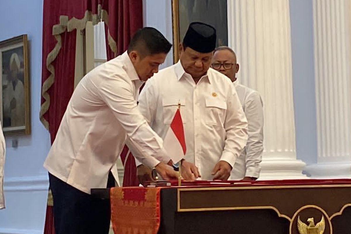 Presiden Prabowo menghapus piutang macet kepada usaha mikro, kecil, dan menengah (UMKM) di bidang pertanian, perkebunan, peternakan, perikanan, dan kelautan, serta UMKM lainnya dengan menandatangani PP Nomor 47 Tahun 2024 di Istana Merdeka, Kompleks Istana Kepresidenan, Jakarta Pusat, Selasa (5/11/2024). (Foto: Fika Nurul Ulya/Kompas.com)
