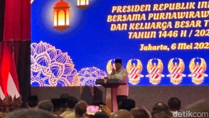 “Bahwa kita harus menyelamatkan bangsa dan rakyat dan Tanah Air kita dan mereka mengajar pada kita semangat, tidak pernah menyerah. Saya tidak rela kekayaan bangsa kita tidak dinikmati oleh rakyat. Saya tidak rela dan karena itu saya terjun ke politik,” kata Prabowo saat menyampaikan sambutan acara halalbihalal bersama purnawirawan TNI dan Polri, Selasa (6/5/2025).