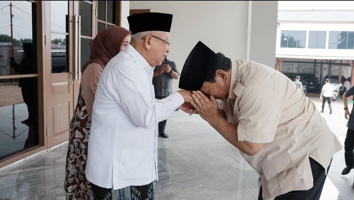 Dilihat dari unggahan akun instagram Prabowo Minggu (24/8/2025), terlihat dirinya sungkem ke Ma’ruf Amin. Prabowo tampak memakai kemeja safari berwarna coklat dengan kopiah hitam. Prabowo juga menunggah foto saat keduanya duduk bersebelahan.