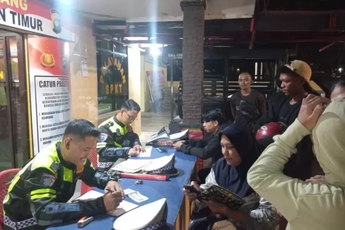 Satlantas Polres Bintan mendata pengendara yang melanggar aturan berlalu lintas saat razia KRYD dan Operasi Keselamatan Seligi di Kecamatan Bintan Timur, Sabtu (15/2/2025) malam. (Foto : Dwi Susilo/batamtv.com)