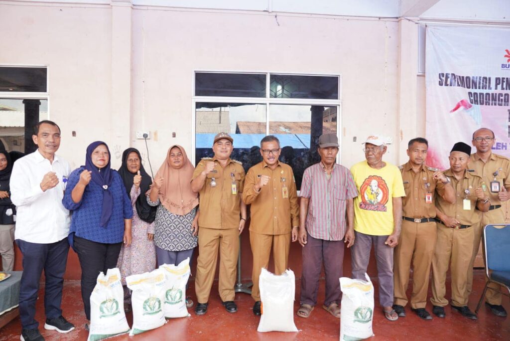 Jefridin, M.Pd. menyerahkan secara simbolis bantuan pangan cadangan beras pemerintah (CBP) periode November Tahun 2023 untuk masyarakat Kelurahan Pulau Buluh Kecamatan Bulang di Halaman Vihara Samudra Bhakti, Senin (13/11/2023).
