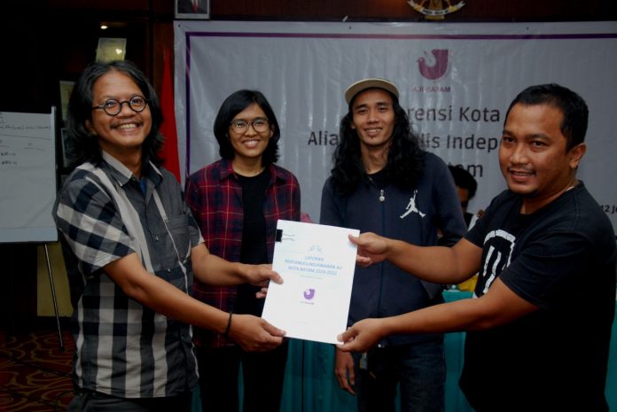 BATAM, batamtv.com – Aliansi Jurnalis Independen (AJI) sukses menggelar Konferensi Kota ke-6 di Hotel PIH Batam Center, Minggu, 12 Juni 2022. Fiska Juanda dan Fathur Rohim sebagai Ketua dan Sekretaris AJI Batam untuk periode 2022-2025.