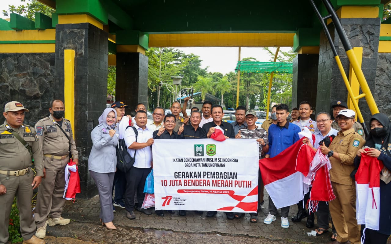 TANJUNGPINANG, batamtv.com – Gubernur Kepulauan Riau H. Ansar Ahmad yang juga ketua Ikatan Cendekiawan Muslim Indonesia (ICMI) Kepri turun langsung ke lapangan memimpin gerakan pembagian 1500 bendera merah putih di simpang Pamedan, Tanjungpinang, Selasa (16/8).