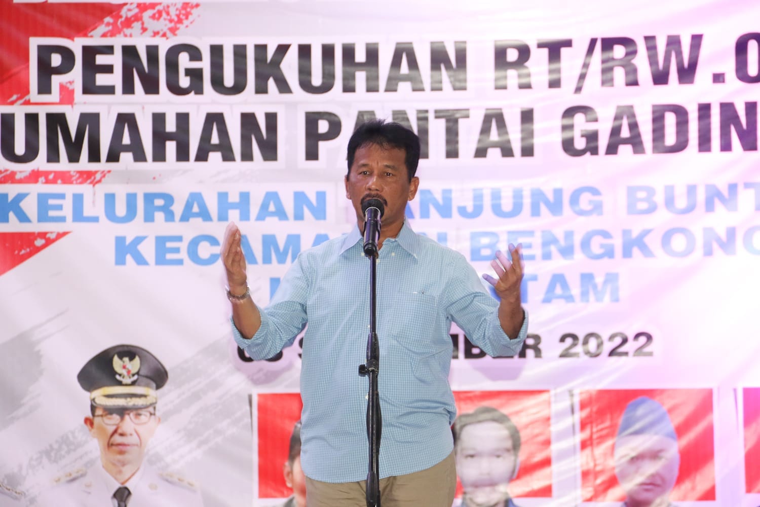 Eka Novriandi selaku Ketua RW 18 Tanjungbuntung mengucapkan terima kasih atas kehadiran Wali Kota Batam Muhammad Rudi menyaksikan pengukuhan dirinya dan seluruh Ketua RT di lingkungannya.