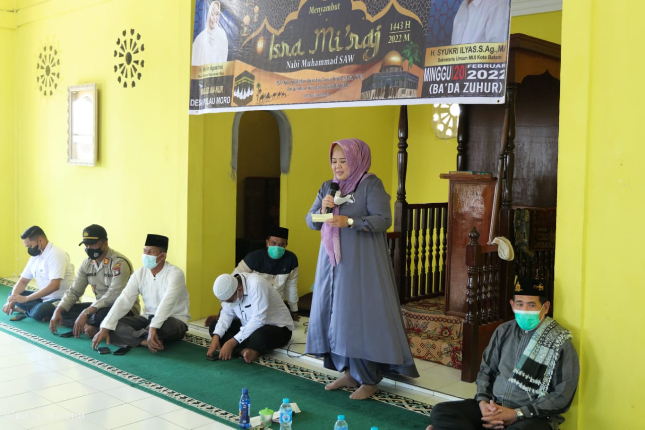 Wagub Kepri Hj Marlina Agustina menyampaikan sambutan acara menyambut Isra' dan Mi'raj Nabi Muhammad SAW 1443 H Di Masjid An-Nur Karimun. f.ds-batamtv.com