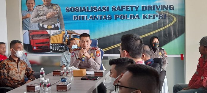 Dirlantas Polda Kepri AKBP Tri Yulianto, S.I.K., M.Si. menyampaikan materi terkait Safety Driving dan mengatakan Beberapa tempat di Provinsi Kepri sering terjadi kecelakaan menonjol yang melibatkan kendaraan angkutan barang seperti Truk, Tronton, Trailer, Dump Truk dan bahkan Bus.