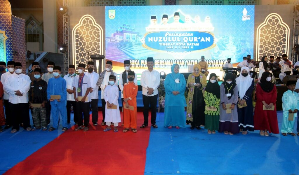 BATAM, batamtv.com -Wali Kota Batam Muhammad Rudi dan Wakil Walikota Batam Amsakar Achmad berbuka puasa bersama Anak Yatim dan masyarakat di Masjid Agung Batam, Senin (18/4). Kegiatan ini merupakan rangkaian dengan Peringatan Nuzulul Qur’an 1443 Hijriah.