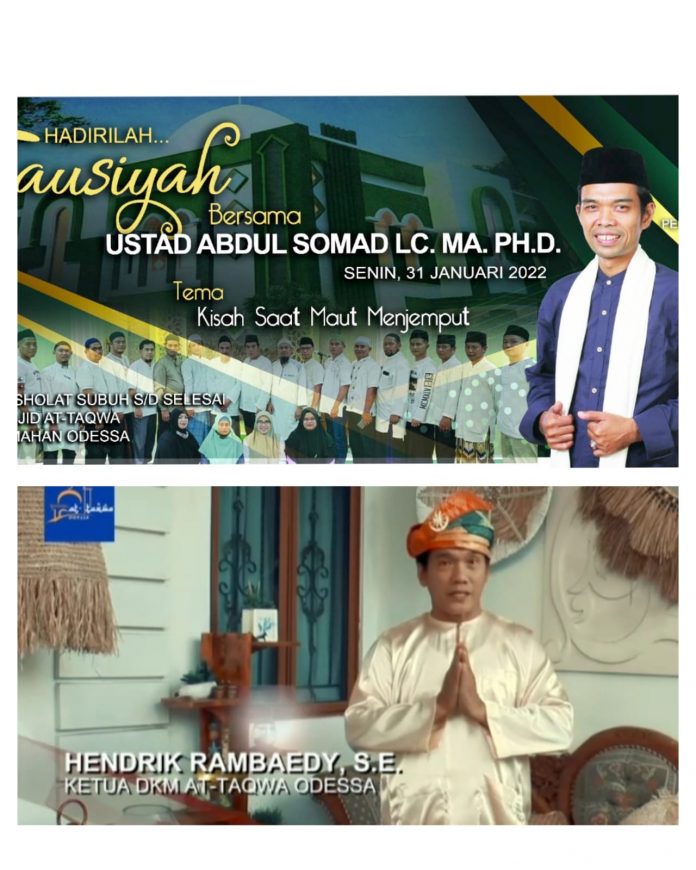 “Insyaa Allah jika tidak ada halangan Tuan Guru Ustad Abdul Somad akan menyambangi masjid At-Taqwa Odess memberikan tausiyah subuh Senin 31 Januari esok,” ujarnya.