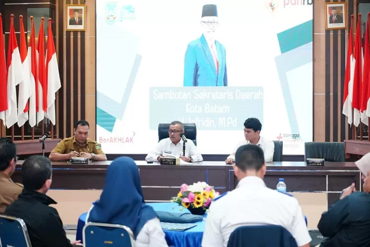 Sekda Kota Batam Jefridin M.Pd mewakili Walikota Batam H Muhammad Rudi saat membuka kegiatan Asistensi LHE Reformasi Birokrasi (RB) di Aula Engku Hamidah Lantai IV, Selasa (02/7/ 2024). (Foto : Muhammad Amin/batamtv.com)